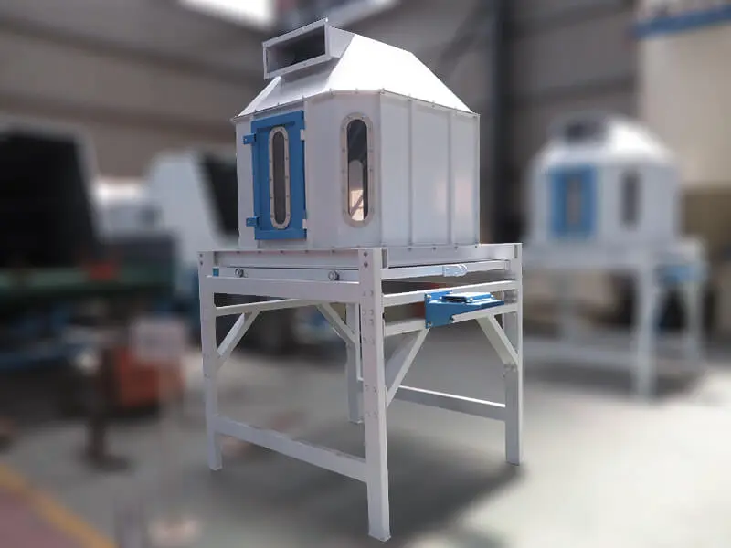 The feed pellet cooler, a counterflow cooling machine in feed plants, matures materials and boosts pellet quality and water resistance. The animal feed cooling machine has the characteristics of high degree of automation and advanced technology.
